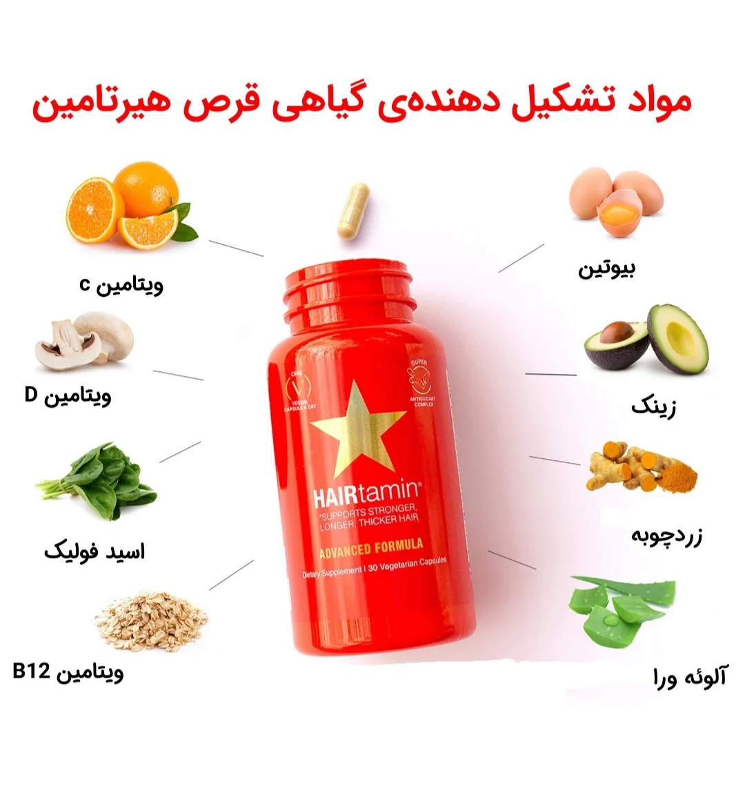 هیرتامین یکی از مکملهای غذایی محبوب برای بهبود سلامت مو و پوست است. این مکمل معمولاً حاوی ترکیبات متنوعی است که به تقویت موها و بهبود حالت پوست کمک میکند. از جمله مواد مؤثر موجود در هیرتامین میتوان به بیوتین اشاره کرد که ویتامینی از گروه ب است و به رشد و سلامت موها کمک میکند. علاوه بر بیوتین، ویتامین E و ویتامین D نیز در این مکملها به عنوان آنتیاکسیدان عمل کرده و به بهبود گردش خون در پوست سر کمک میکنند.