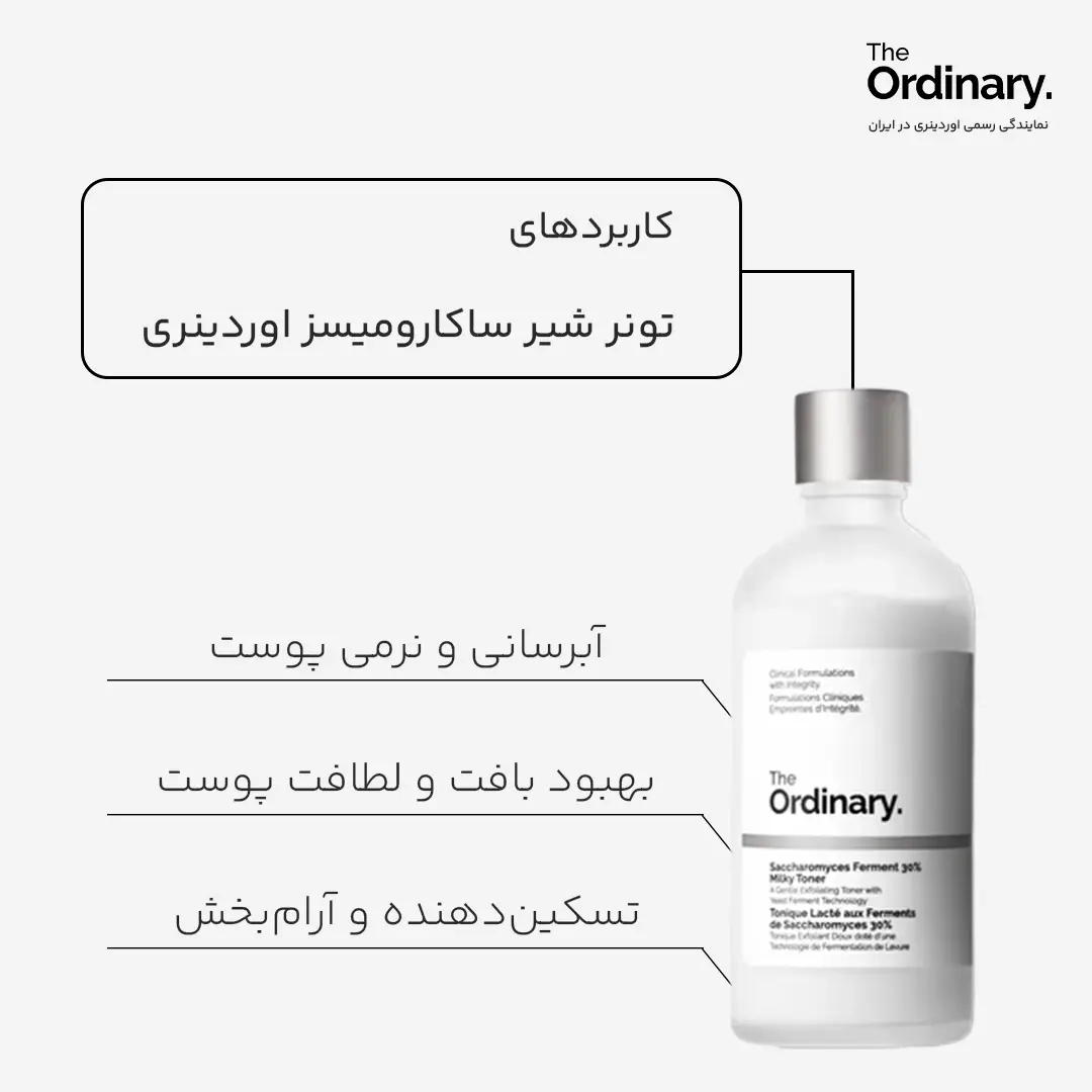 تونر لایهبردار و آبرسان شیر ساکارومایسس 30% اوردینری مناسب پوست خشک و حساس