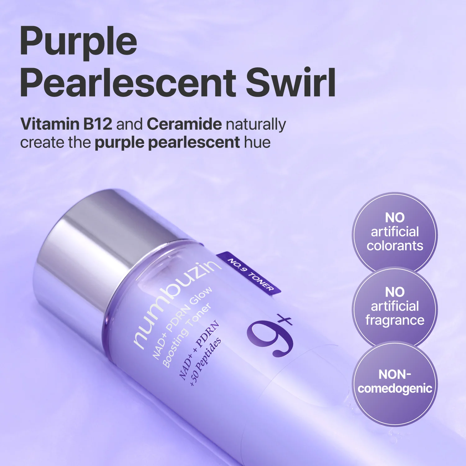 تونر Numbuzin No.9 Peptide Toner با بهرهگیری از پپتایدهای فعال، فرآیند کلاژنسازی را تحریک میکند که نقش کلیدی در کاهش چینوچروک و افزایش استحکام پوست دارد. وجود PDRN به بازسازی سلولی و ترمیم بافت آسیبدیده کمک میکند، در حالی که NAD با تقویت متابولیسم سلولی، انرژی مورد نیاز برای جوانسازی پوست را فراهم میکند.