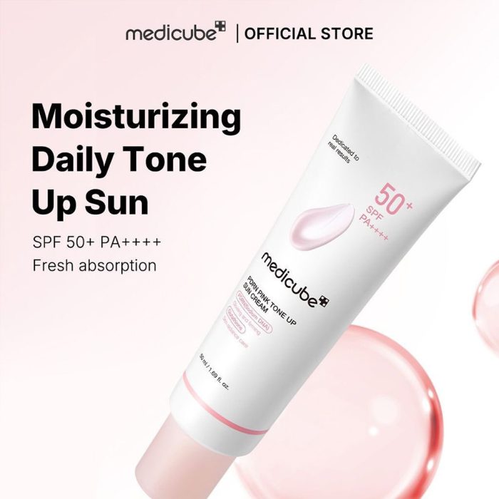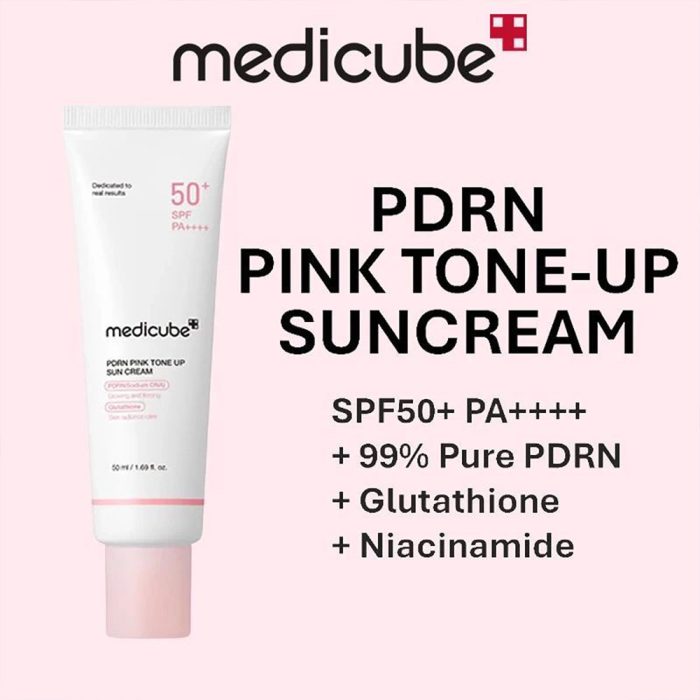 کرم ضد آفتاب تون آپ PDRN مدیکیوب مدل Pink Tone Up Sun Cream | محافظت و روشنکنندگی پوست
