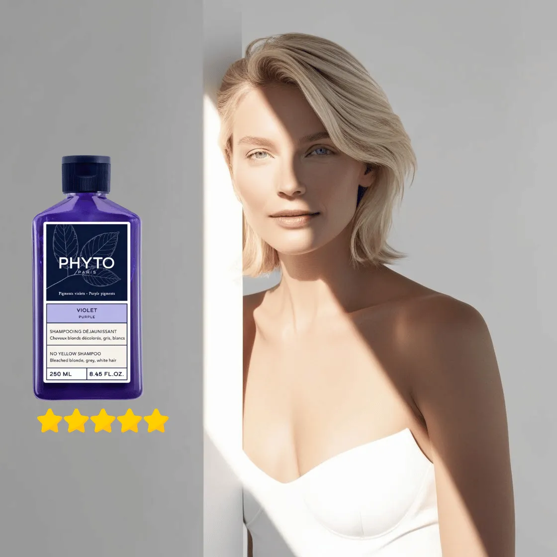 شامپو ضد زردی فیتو (Phyto Purple / Anti-Yellow Shampoo) یک شامپوی تخصصی برای خنثیسازی تناژ زرد و نارنجی موهای بلوند، دکلره و خاکستری است که بدون خشککردن مو، رنگی شفاف و سرد به موها میبخشد