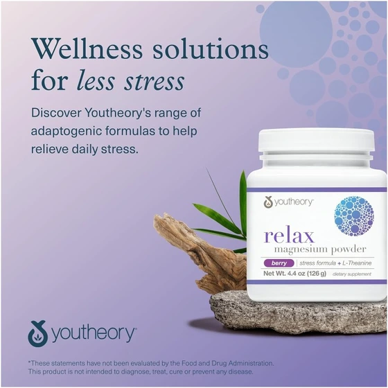 پودر منیزیم ریلکس یوتئوری – مکمل آرامش، کاهش استرس و بهبود خواب طبیعی | Youtheory Relax Magnesium Powder