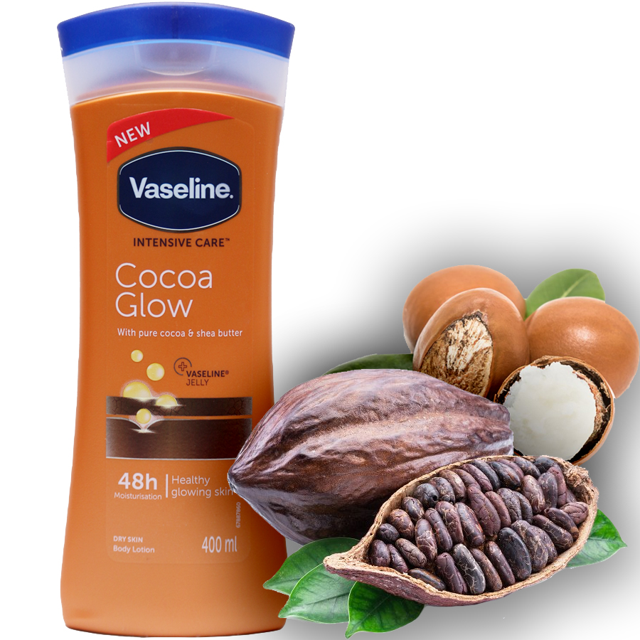 لوسیون بدن وازلین کاکائو 48H اصل | مرطوبکننده قوی، تغذیهکننده و نرمکننده پوست 400ml