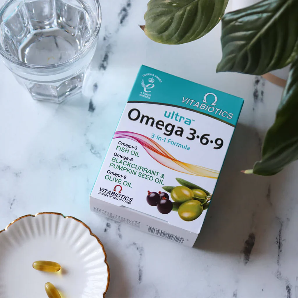 Ultra Omega 3-6-9 Vitabiotics ترکیبی متعادل از اسیدهای چرب ضروری است. EPA و DHA موجود در امگا 3 نقش مهمی در سلامت قلب و عملکرد شناختی دارند. امگا 6 از طریق روغن گل مغربی به سلامت پوست و تعادل هورمونی کمک میکند و امگا 9 از روغن زیتون در حمایت از سلامت قلب مؤثر است.