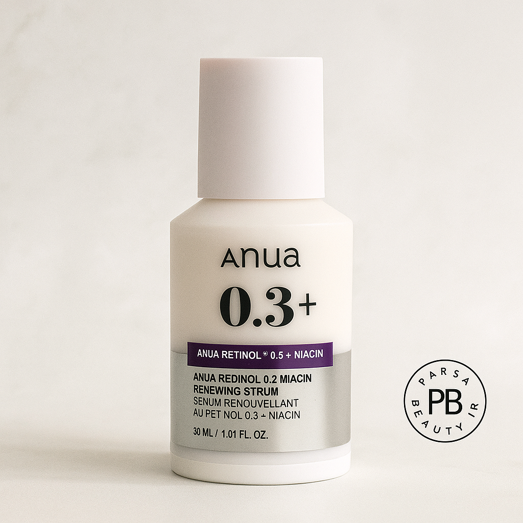 سرم Anua Retinol 0.3 + Niacin Renewing Serum یکی از محصولات ضدپیری و بازسازیکننده پوست از برند کرهای Anua است که برای بهبود بافت پوست، کاهش چینوچروک و افزایش شادابی طراحی شده است