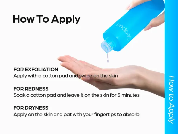 پس از شستشوی صورت، مقدار مناسبی از تونر را روی پوست تمیز با پنبه یا دست بزنید.